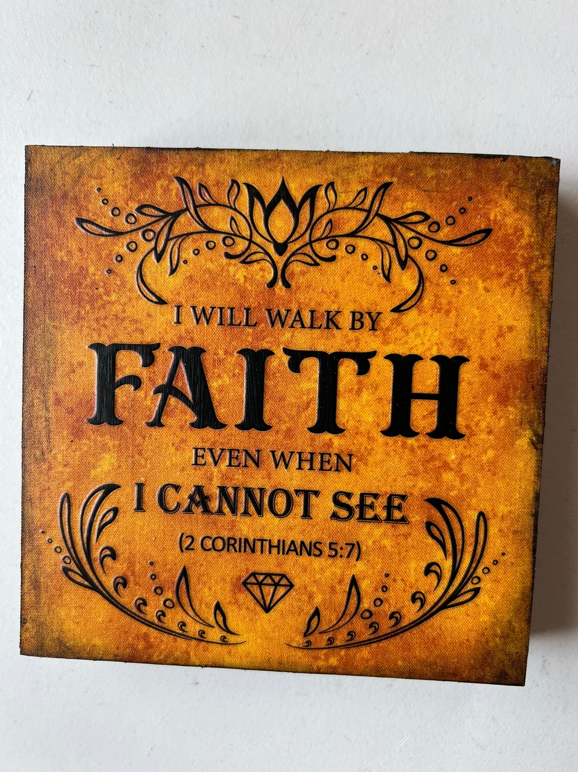 Inspirational shelf sitter. 6x6 fabric covered wood.
