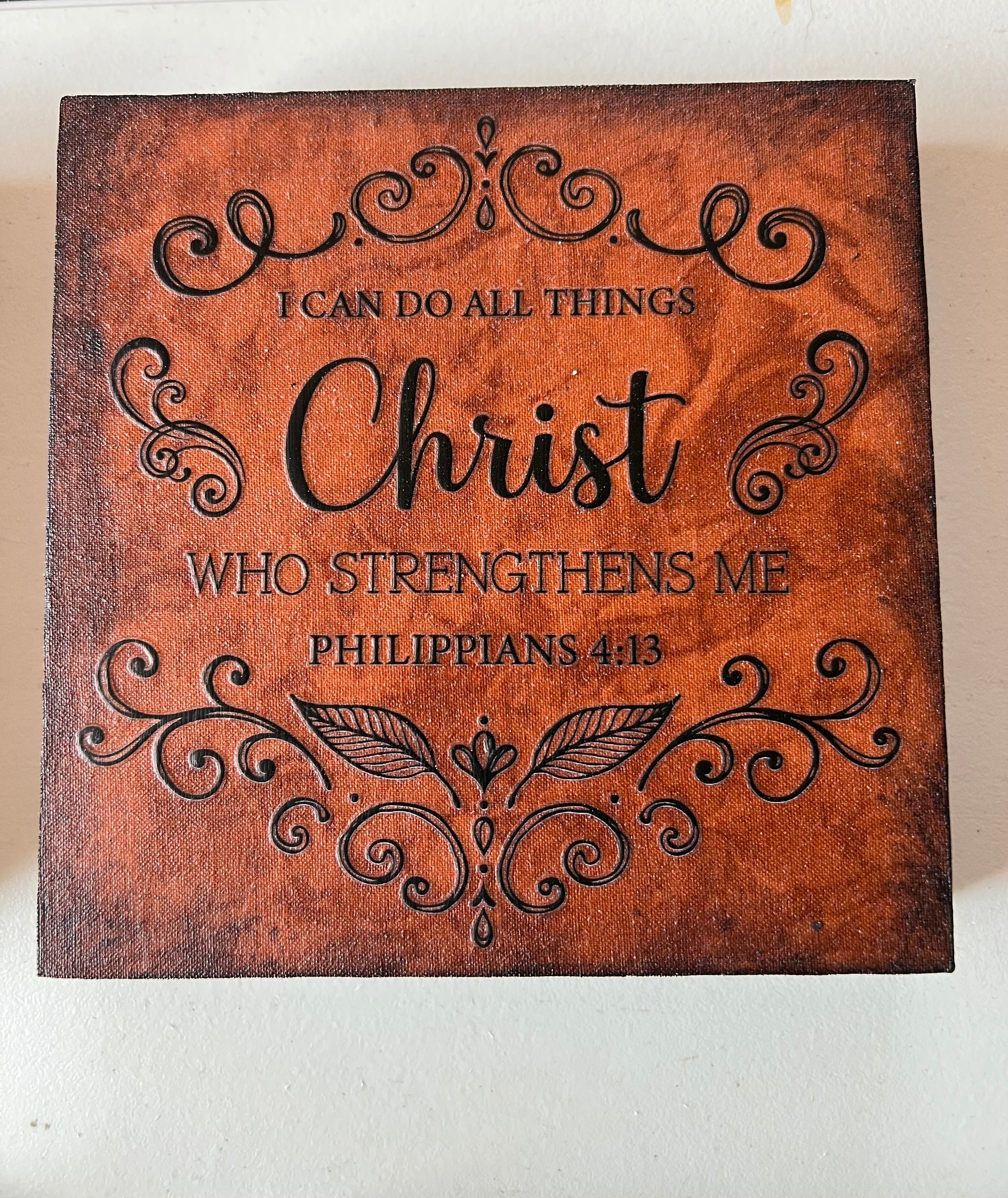 Inspirational shelf sitter. 6x6 fabric covered wood.